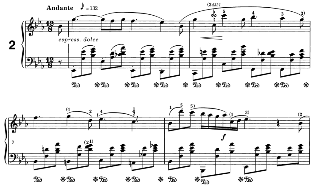 歌うような旋律は、クレッシェンドとデクレッシェンドを細かくつけることで「心の揺れ」が表現されます。
