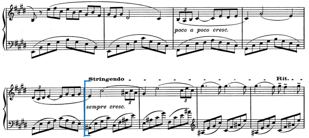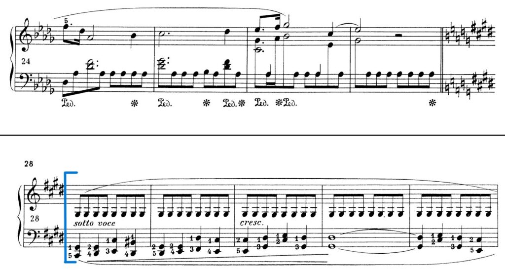 前半の穏やかな変ニ長調から、一気に嬰ハ短調へ。
