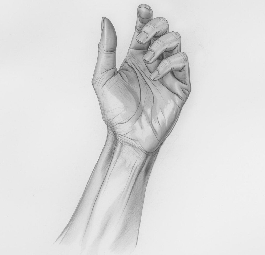 腕はどこまでも自由でリラックスしているのに、指先だけは重厚な重みを支える強さを持っている。