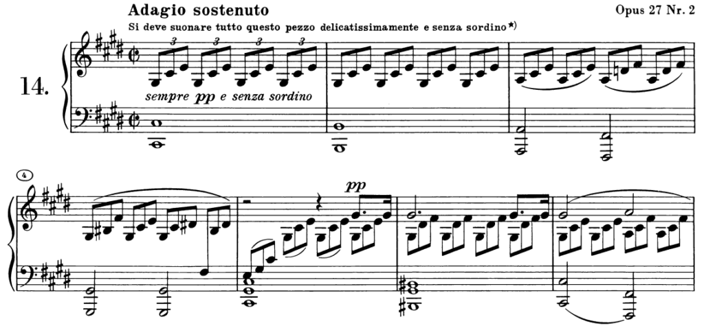 たとえば、ベートーヴェンの《ソナタ第14番「月光」》の第1楽章。