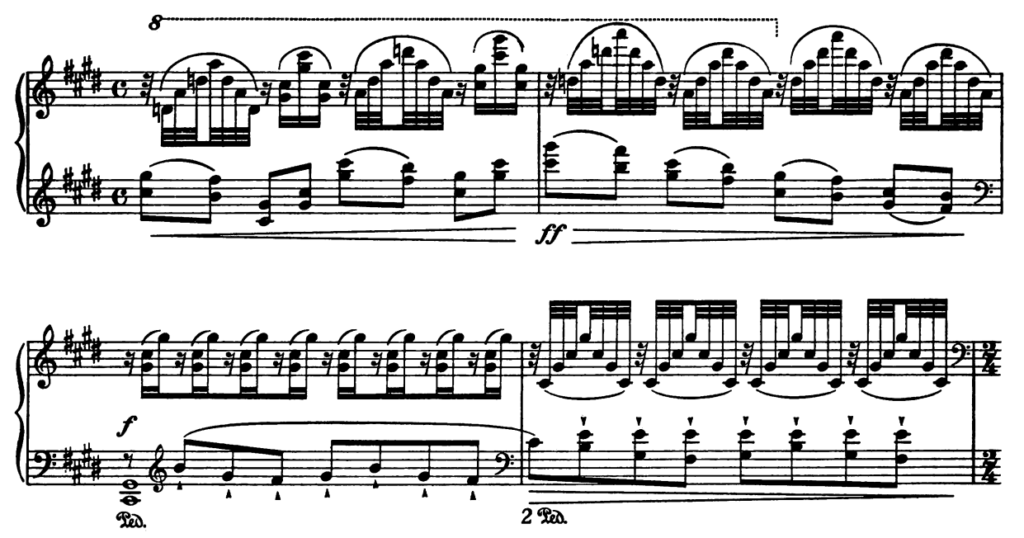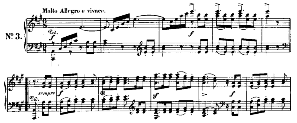 メンデルスゾーンの《無言歌集》〈狩の歌〉では、冒頭に「f」があります。
