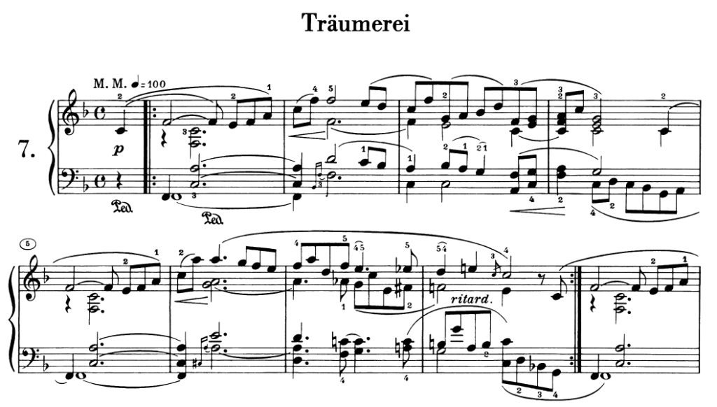 シューマンの《子供の情景》〈トロイメライ〉にも「p」が書かれています。
