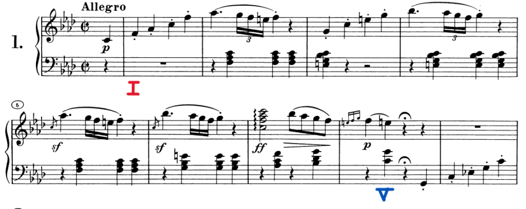 〈例〉ベートーヴェン《ピアノソナタ第1番 ヘ短調 Op.2-1 第1楽章》 8小節目
